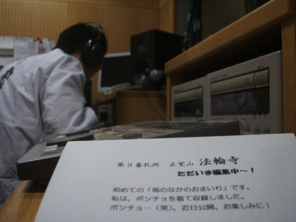ということで、今回はマジメに編集しております。「法輪寺」です。前回の風もすごかったですが、今回は「雨」。すごくはないものの、よーく聞いていると、雨が地面をたたく音、カエルの鳴き声がキレイに入っています。こういうところを聞いていただくのもおススメ。また、「人へんろ」では、山門で、とある行為をしている男性に話を聞いています。えっ、「とある行為」って何でしょう…。ワクワク。