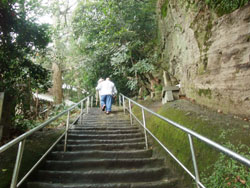 喘ぎながら石段を上る一行ですが、道のりが厳しいのは当然なのです